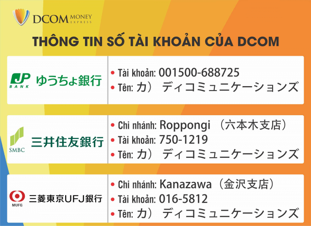 Đề tài chuyển tiền về nước là mối quan tâm của rất nhiều bạn mới sang Nhật nên hôm nay mình viết 1 bài về cách chuyển tiền từ Nhật Bản về Việt Nam thông qua bên thứ 3 đó là DCOM - Công ty độc quyền dịch vụ chuyển tiền nhanh 10 phút vào trực tiếp STK người nhà.