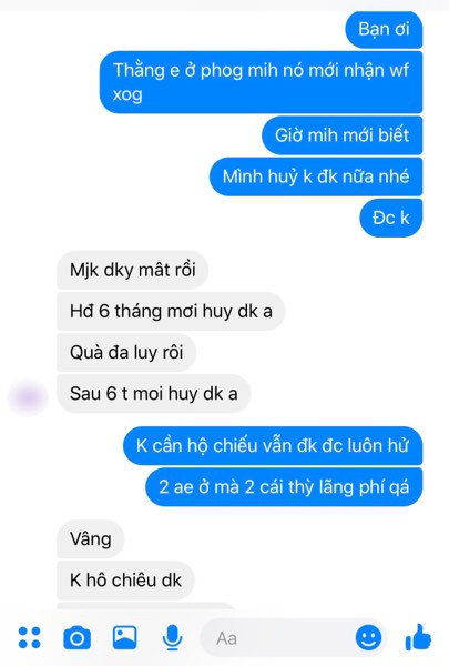 - Bảo rằng hủy sẽ tốn một số tiền rất lớn: 5 man 8 là trường hợp mình biết (thực tế là 9 sen 5)