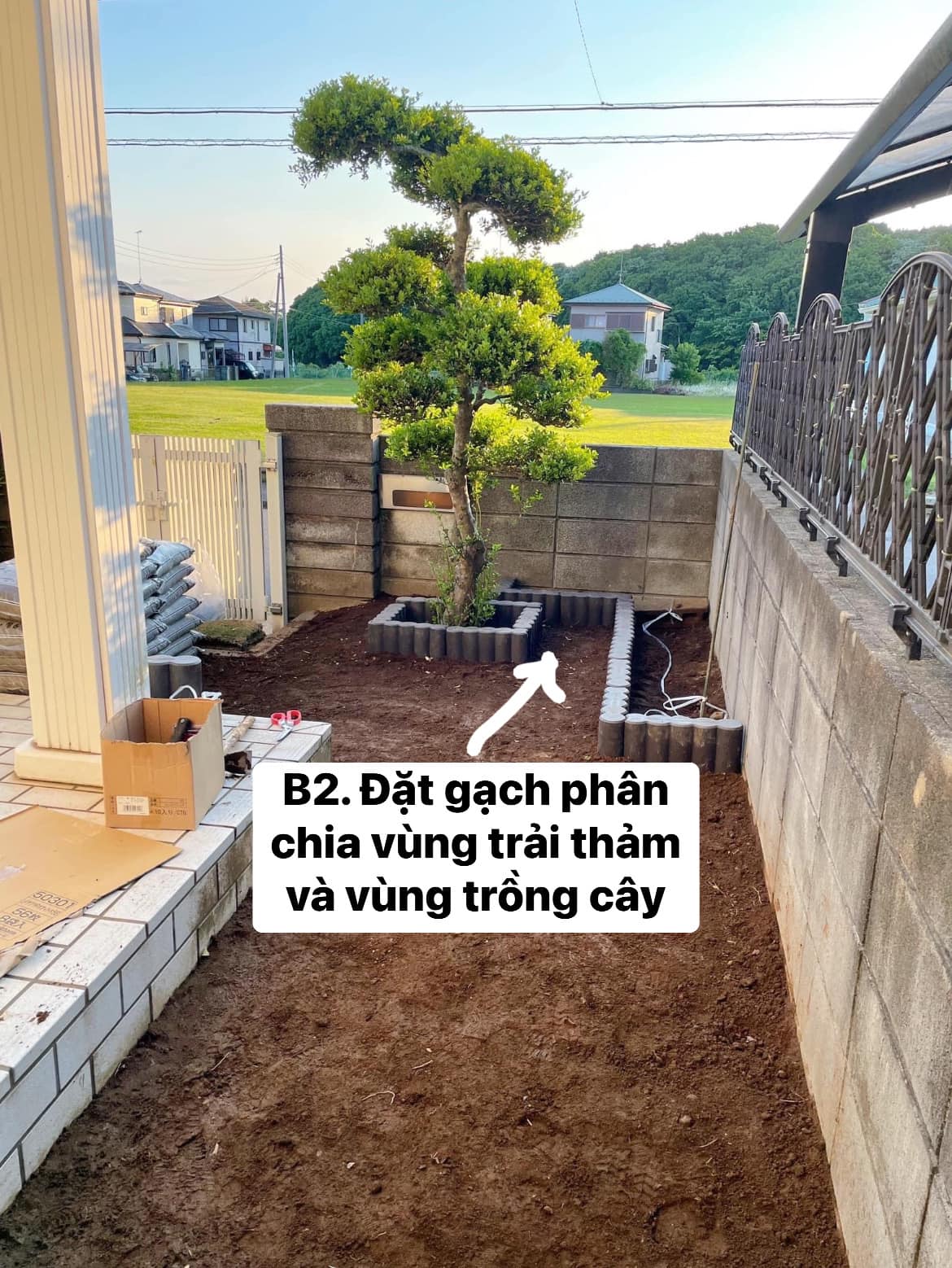 - Đặt gạch 🧱 để ngăn ranh giới giữa phần trải thảm và phần đất trồng cây.